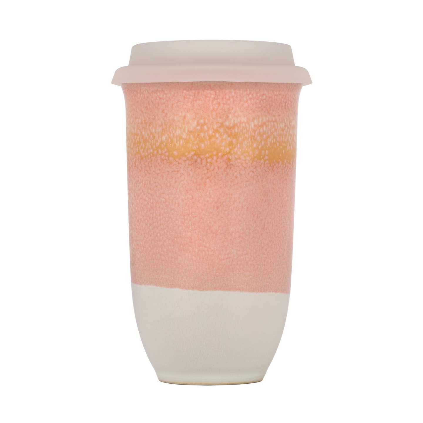 Turn every sip into a golden hour moment with the Afterglow 16oz Ceramic Travel Mug. This handcrafted mug features a soft gradient of pink, golden yellow, and orange layered over a calming grey base—each piece uniquely glazed to reflect nature’s evening glow. Crafted from high-quality stoneware, it offers a clean, pure sip with no metallic taste. The BPA-free silicone lid and heat sleeve ensure spill-free convenience and comfort, whether you're commuting or unwinding at home.