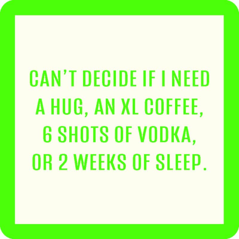 Coasters are 4”x4” and made with resin with a cork backing and round corners.