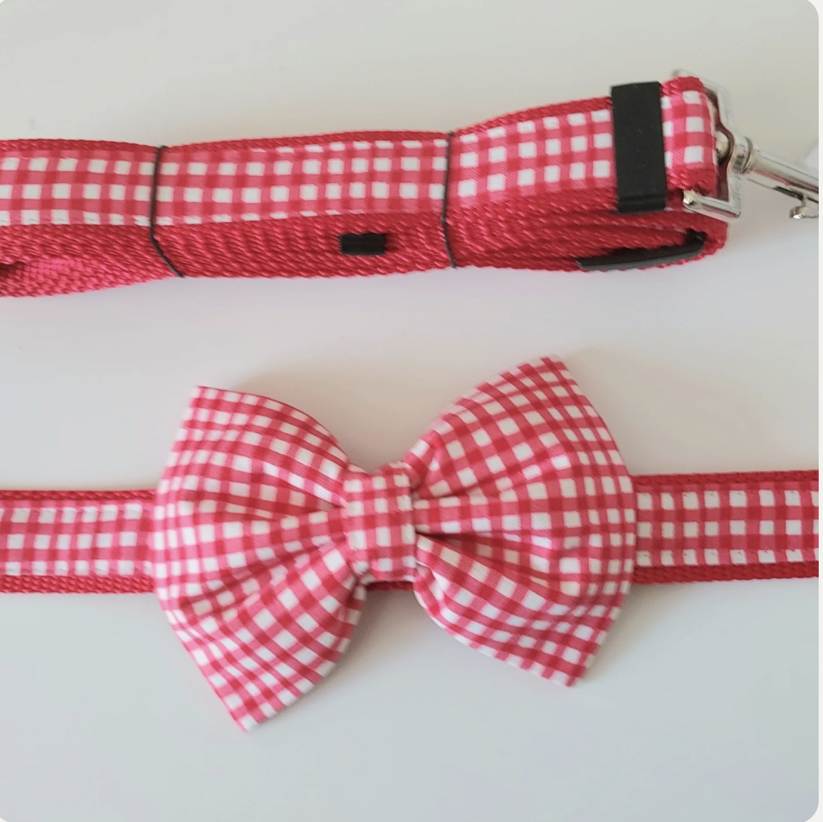 Add a touch of personality to your pup’s look with this handmade dog bowtie and collar featuring a fun Cherry checkered print. Crafted in Rhode Island and available at Primavera Newport, this stylish accessory is perfect for everyday walks, seaside adventures, or special occasions.
