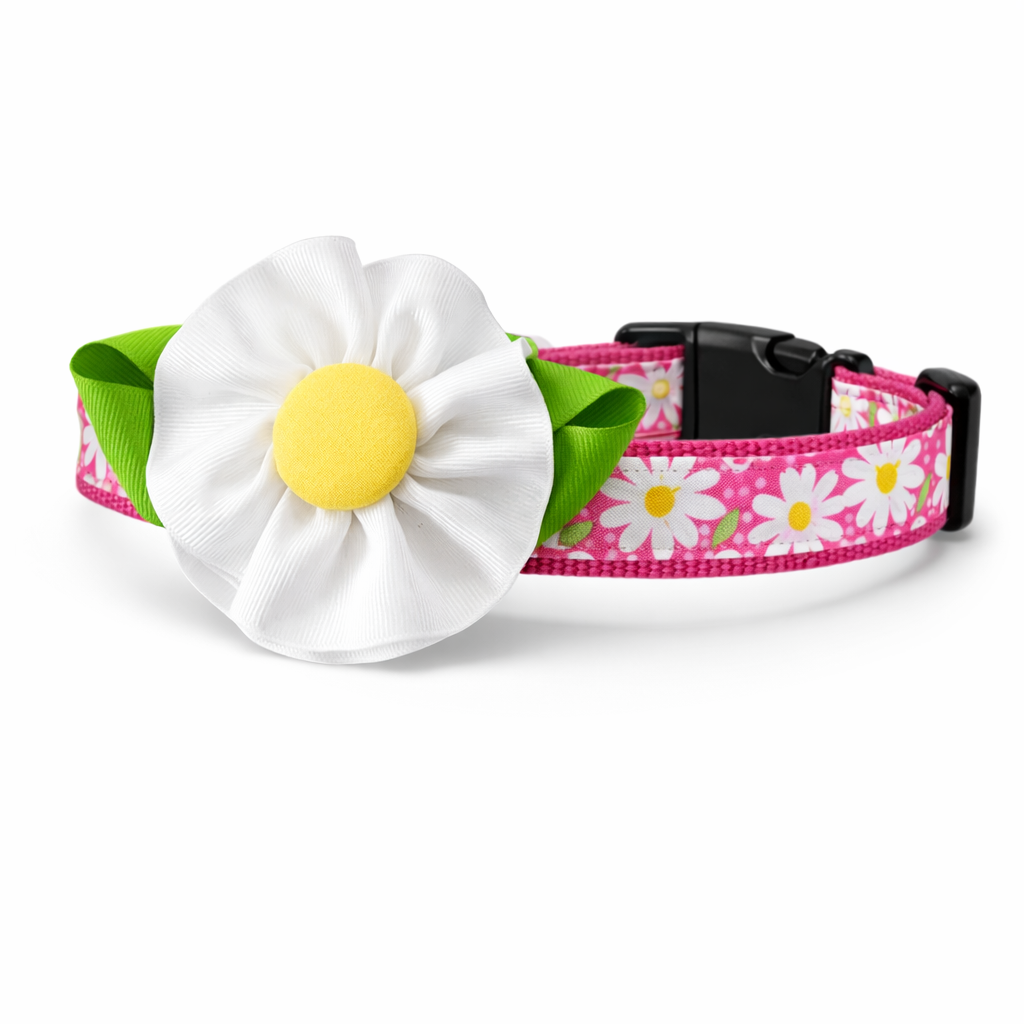 Add a touch of personality to your pup’s look with this handmade dog flower and collar featuring a fun Daisy pattern. Crafted in Rhode Island and available at Primavera Newport, this stylish accessory is perfect for everyday walks, seaside adventures, or special occasions.