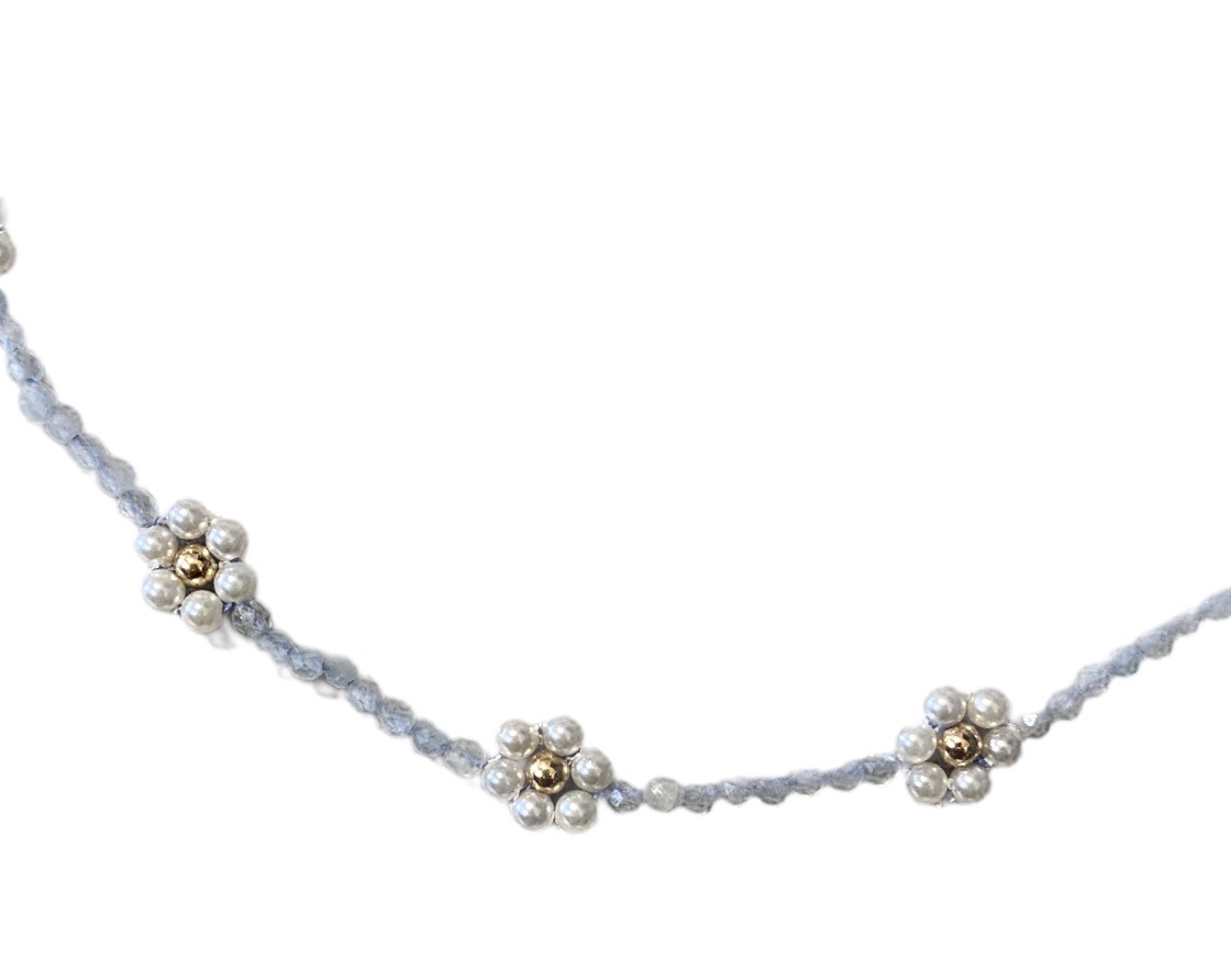 Delicate beaded pearl flowers and semi-precious stones with gold filled accent beads