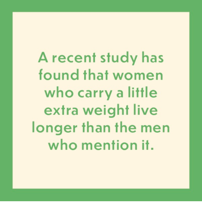 “A recent study has found that women who carry a little extra weight live longer than the men who mention it.”