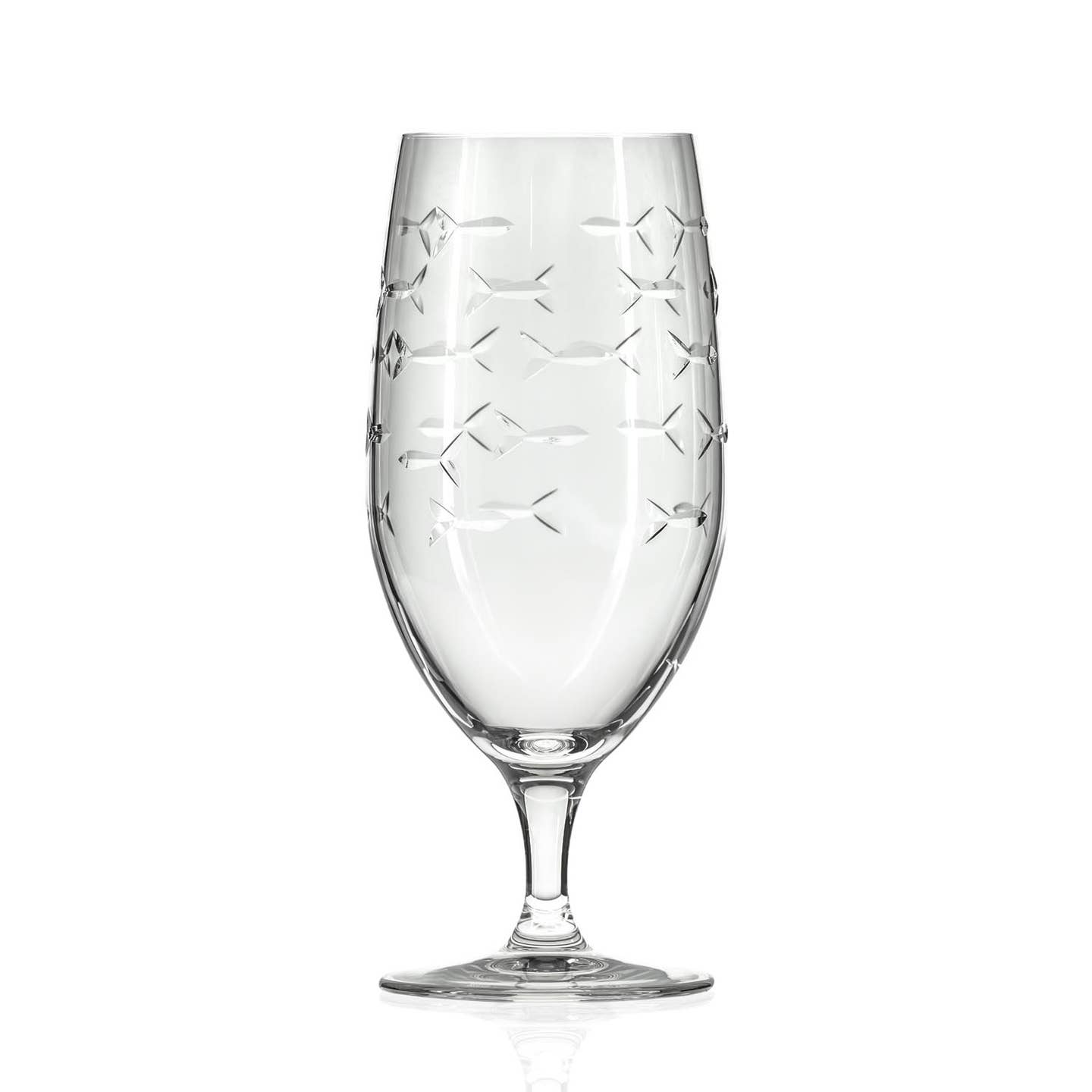 The School of Fish collection, a Rolf Glass classic. Every now and again we all swim against the current. With this artfully depicted school of fish design, beautifully etched and polished fish swim together, except for one little guy headed in the opposite direction. A delightful nod to individuality and the unique spirit inside all of us. Sold Individually.