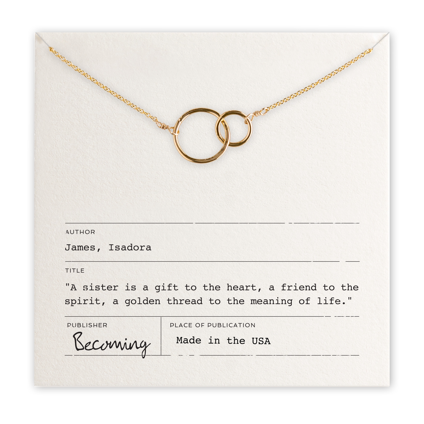 "A sister is a gift to the heart, a friend to the spirit, a golden thread to the meaning of life." -Isadora James