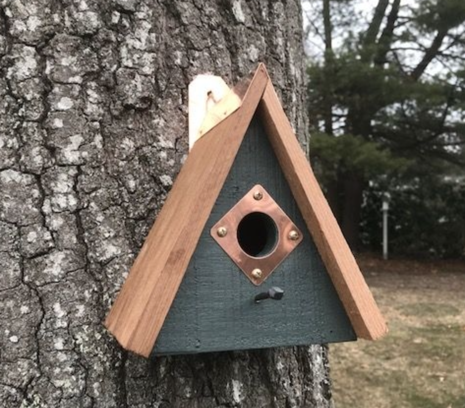 Copper tab, on back, slides opens for cleanout of nesting material at the end of the season