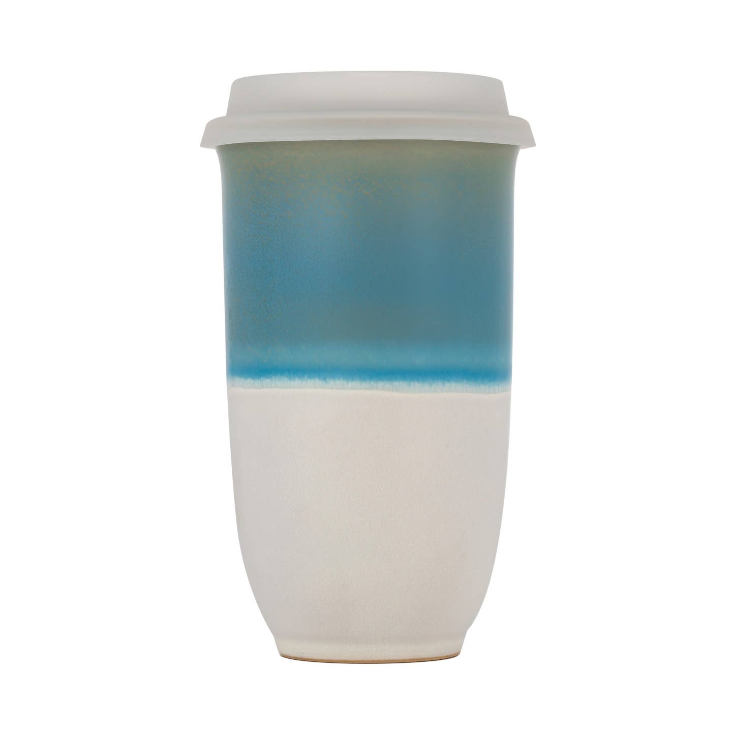 Immerse yourself in the calm of the coast with our Lagoon Ceramic Travel Cup. A soft light blue glaze melts into a sandy clay base, echoing the peaceful beauty of a secluded lagoon.