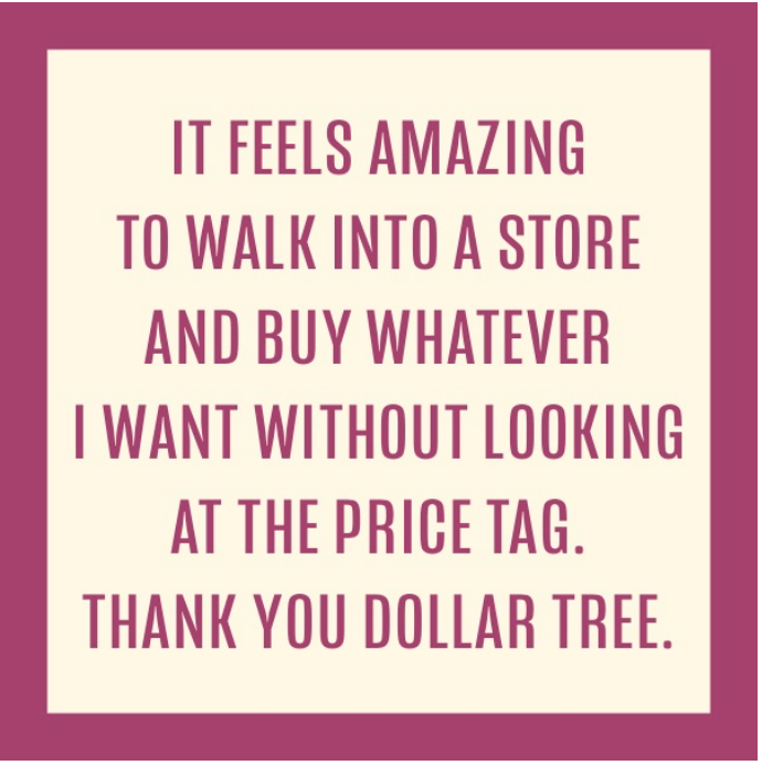 “It feels amazing to walk into a store and buy whatever I want without looking at the price tag. Thank you Dollar Tree.”