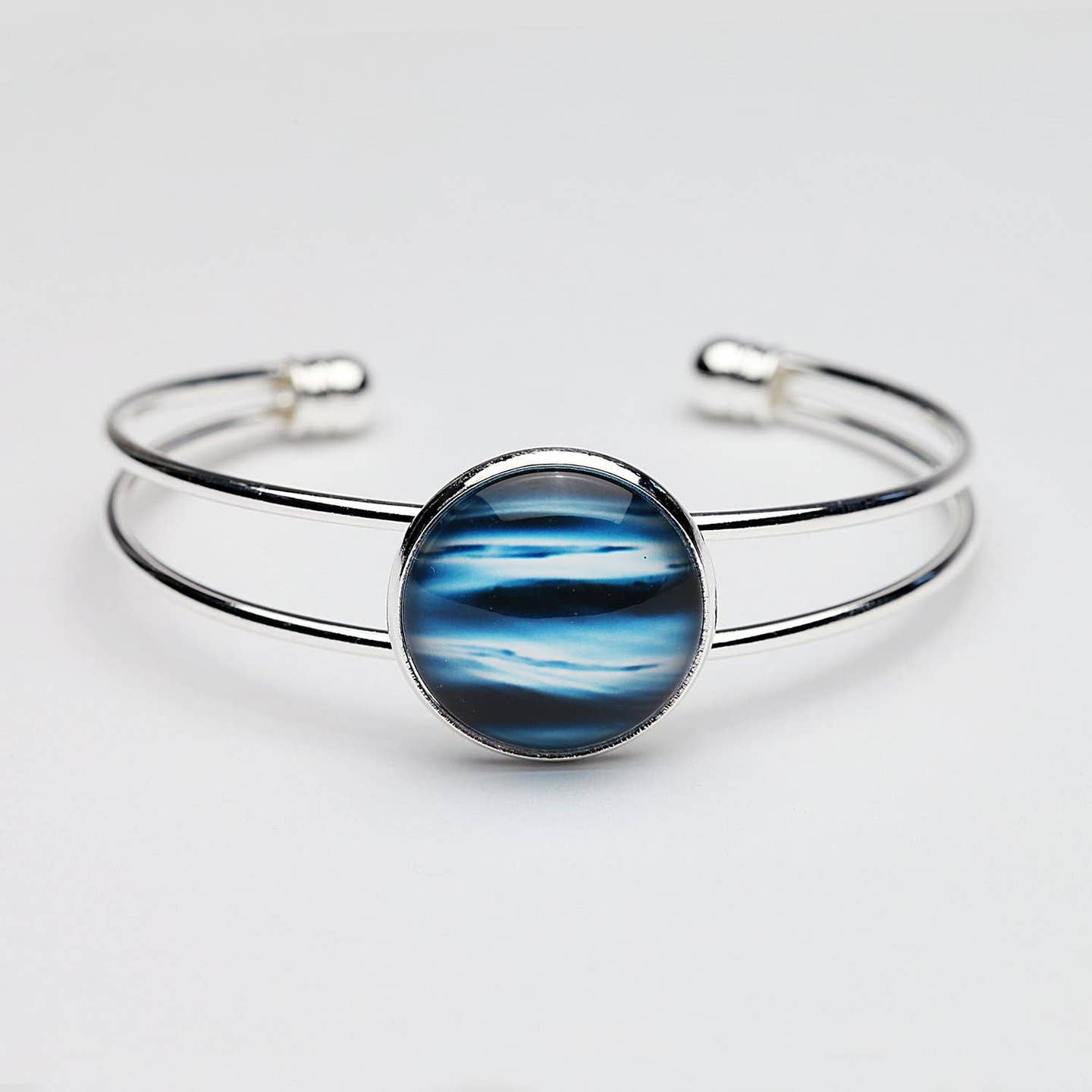 These Bangle Bracelets are designed using original metallic photographs by Nancy Reid Carr that are set by hand under a beautiful 20mm magnifying glass dome. Bezels and bangles are silver plated brass. Nickel and lead free. Made in Rhode Island.